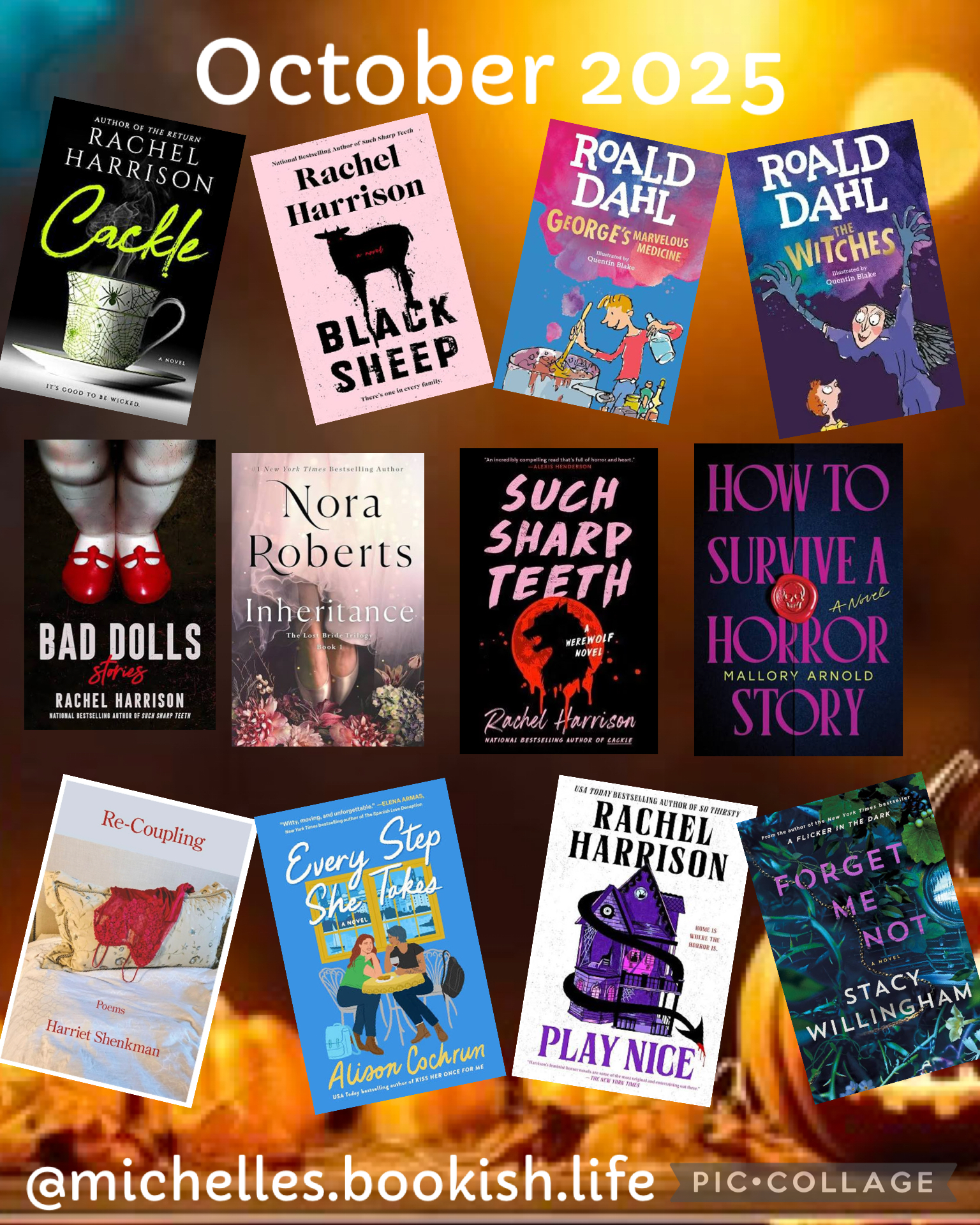 My favorite books read in October were Cackle by Rachel Harrison, Inheritance by Nora Roberts and Every Step She Takes by Alison Cochrun.